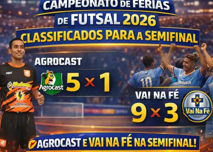 Campeonato de Férias de Futsal 2026: Agrocast e Vai na Fé garantem vaga na semifinal