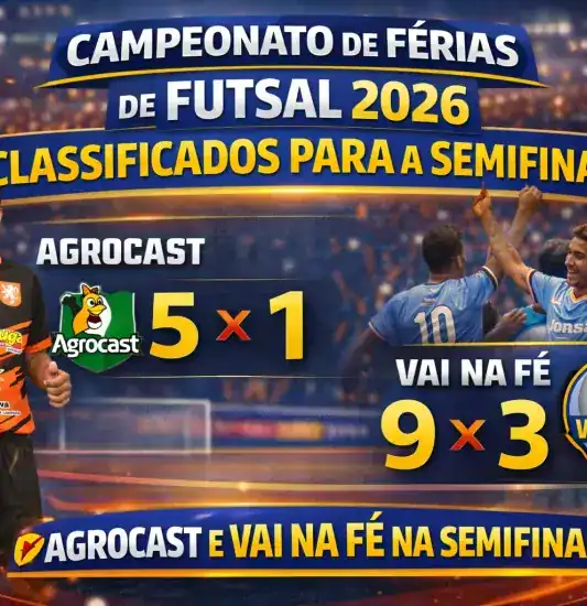 Campeonato de Férias de Futsal 2026 tem noite decisiva nas quartas de final com vitórias da Agrocast Rações e do Vai na Fé, que garantiram vaga na semifinal em Castilho.