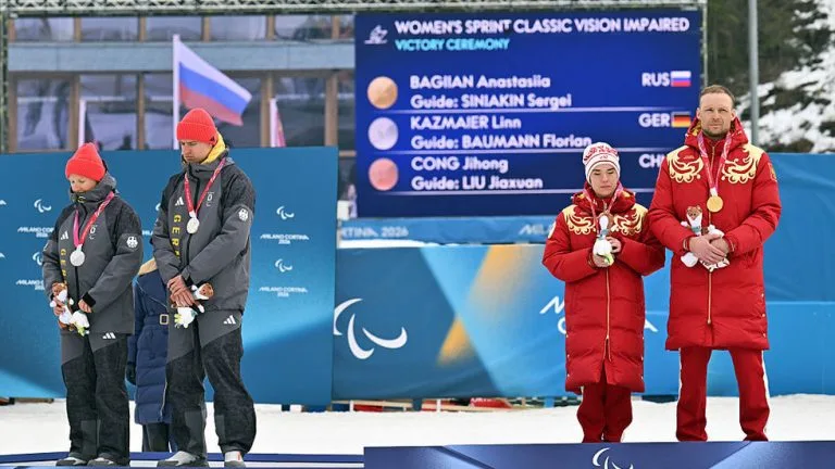 Durante uma cerimônia nos Jogos Paralímpicos de Milano Cortina, os esquiadores alemães Linn Kazmaier e Florian Baumann chamaram a atenção ao se virarem de costas para os medalhistas de ouro russos, Anastasia Bagiyan e Sergey Sinyakin. O ato de protesto ocorreu enquanto o hino russo era tocado, gerando uma onda de repercussões e investigações por parte do Comitê Paralímpico Internacional (IPC).