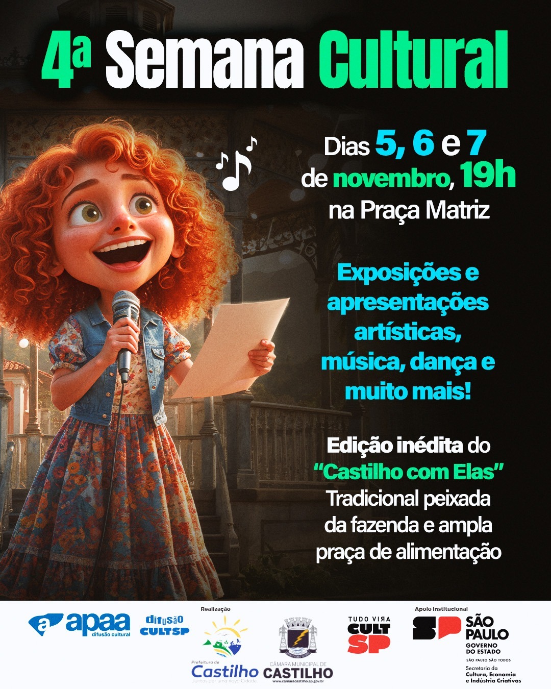 Castilho se prepara para a 4ª edição de sua já tradicional Semana Cultural, um evento que promete agitar a cidade nos dias 5, 6 e 7 de novembro. A Praça da Matriz se transformará em um palco vibrante a partir das 19h, oferecendo uma programação diversificada para todos os gostos.