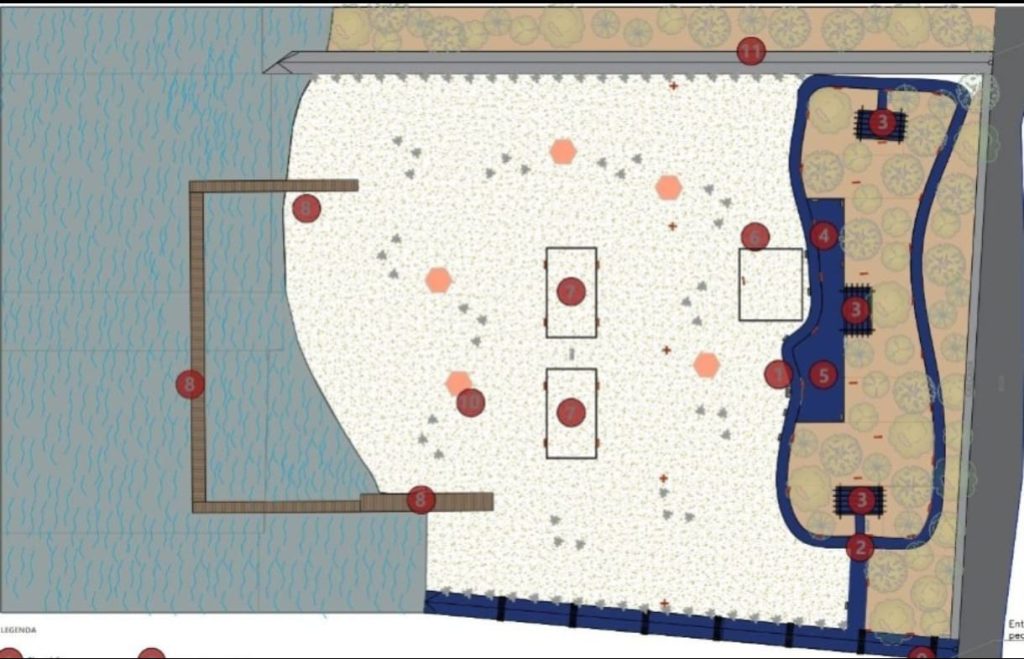 2. Qual será a infraestrutura disponível na nova praia? A Praia Municipal contará com quiosques, píer, chuveirões, playground, rampa para embarcações e quadras de beach tênis.