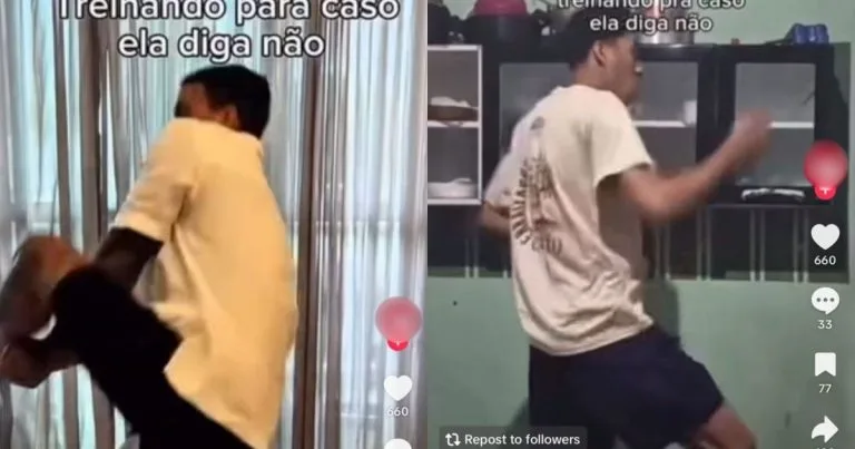 Os vídeos em questão apresentam homens simulando reações agressivas após receber um ‘não’ em situações românticas, com atuações que incluem gestos violentos como socos, facadas e até simulações de disparos. Essa representação da violência gerou um clamor nas redes sociais, com influenciadores e usuários denunciando a normalização da agressão contra mulheres.