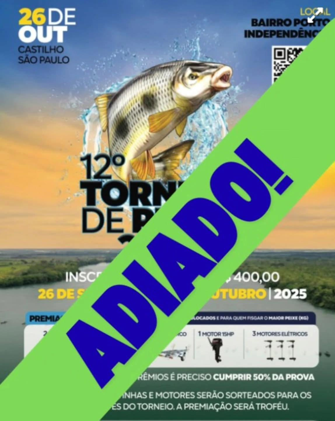 CASTILHO – A tão esperada 12ª edição do Torneio de Pesca de Castilho (SP), que estava marcada para o próximo domingo, dia 26, foi oficialmente adiada para o dia 19 de abril de 2026. A decisão foi tomada em reunião realizada na manhã desta segunda-feira (20) entre os membros do Comtur (Conselho Municipal de Turismo) e a Administração Municipal. #Torneio de Pesca de Castilho 2026